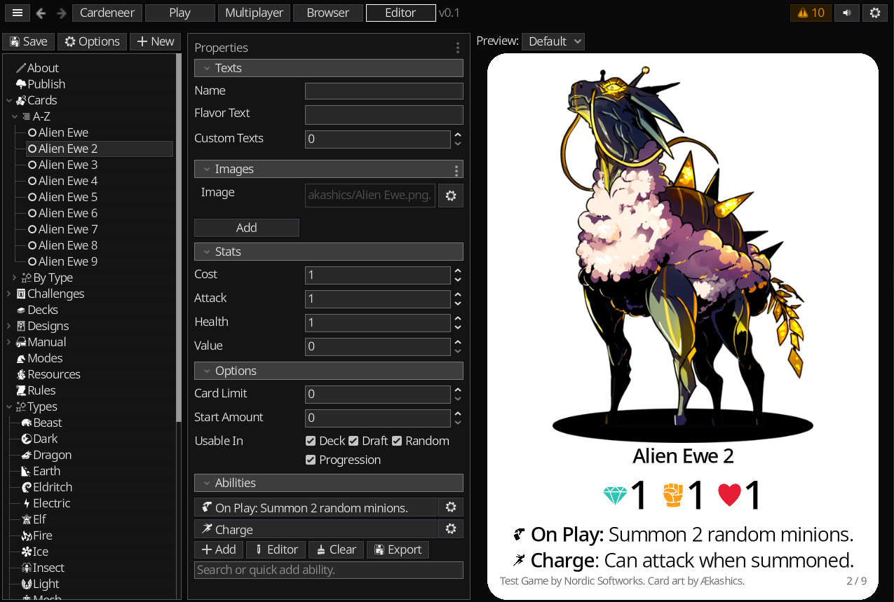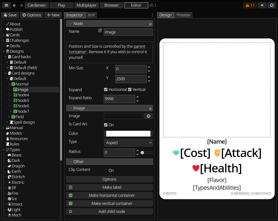 This project initially started because I wanted to try releasing a small CCG and see how it goes, but it evolved into a kind of card game platform/simulator/sandbox. That is much more exciting, but on the other hand, the scope changed into a gigantic project without really thinking it through properly.